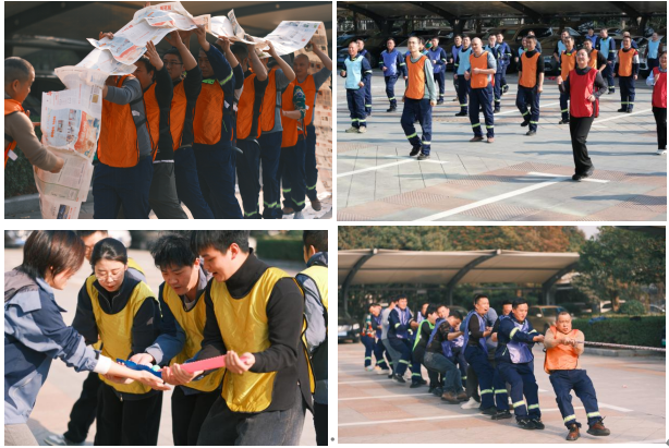 当日下午,运动员们准时进场列队,伴随着领导致辞与集体热身操的完成,运动会正式拉开帷幕。本次赛事设置水到渠成、合力搭建、无敌风火轮三大团体项目及单独评奖的拔河比赛,各项目既考验团队协作,又充满趣味挑战。水到渠成项目,大家配合默契,迅速地将所有球运到指定地点;合力搭建现场,队员们手拉塔钩绳索,精准搬运方木层层垒高,失误后迅速重整旗鼓;无敌风火轮环节,大家分工协作,用报纸、胶带快速搭建“移动跑道”,同步迈步向终点奋进,即便风火轮开裂也不气馁,修补后重新出发。三大项目结束后,最能体现团队凝聚力的集体比赛项目拔河比赛开始了,15人组成的参赛队伍紧握长绳,脚蹬实地、奋力后拉,赛场边加油呐喊声此起彼伏,气氛热烈非凡。