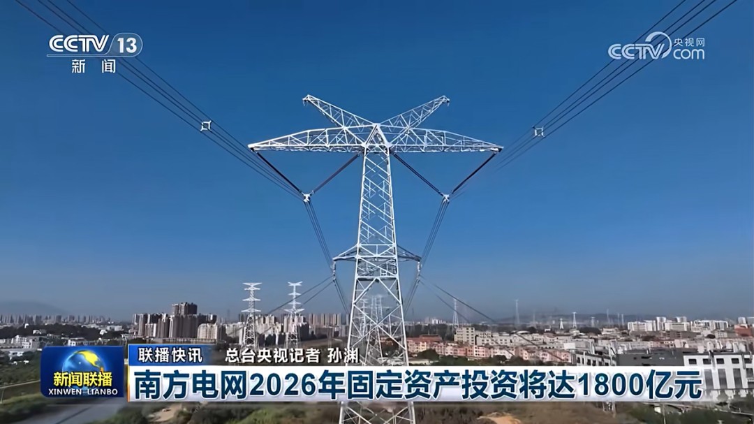 2026年开年,随着国家电网宣布“十五五”期间固定资产投资总额达4万亿元之后,南方电网公司也正式发布年度投资计划:2026年固定资产投资将达1800亿元,连续五年创历史新高,年均增速达9.5%。这一超大规模的投资,既是服务“十五五”良好开局的关键举措,也是支撑我国能源转型与经济高质量发展的坚实底气。