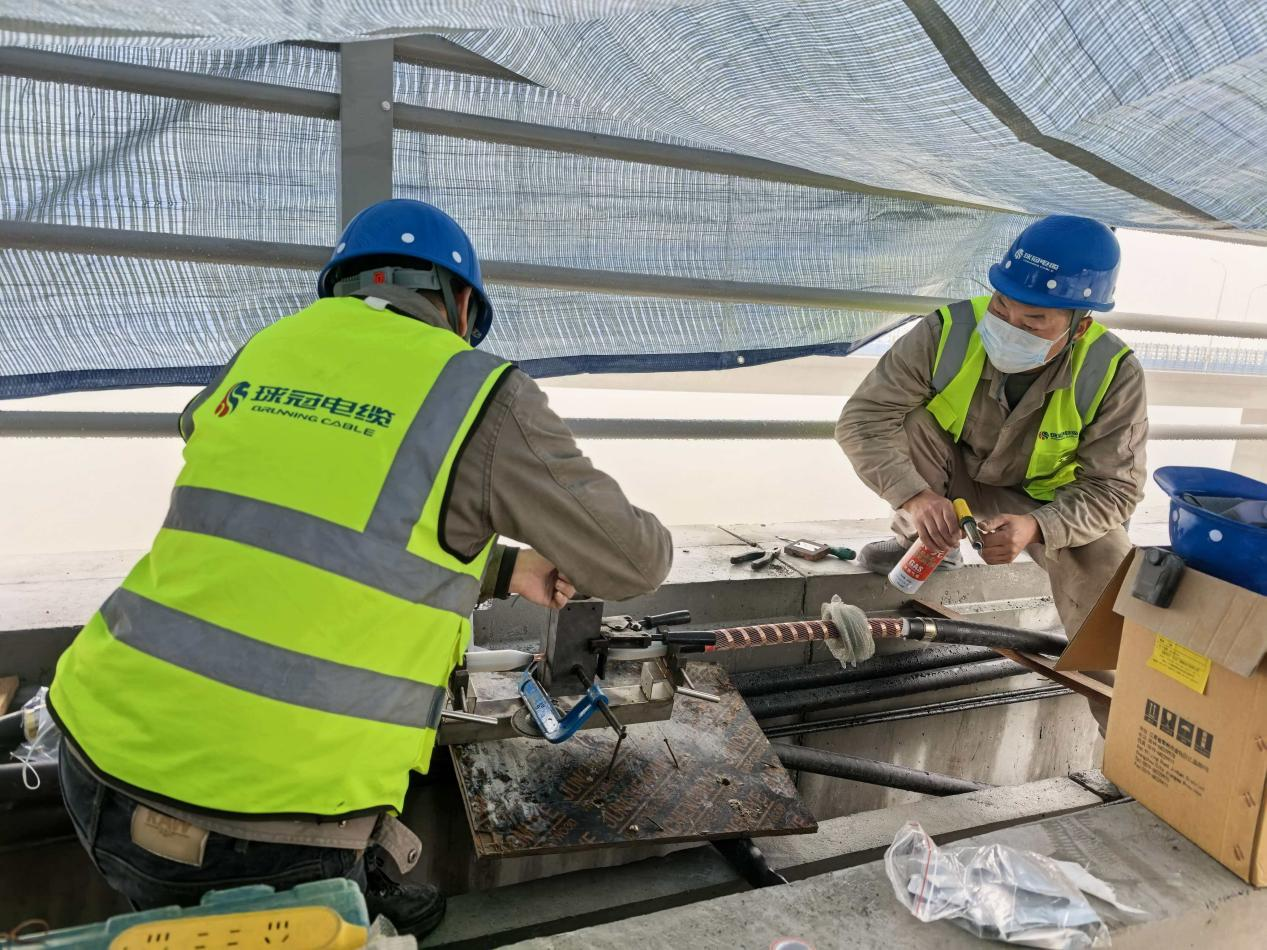 施工过程中,球冠电缆团队迎难而上,克服了跨海大桥特殊工况带来的诸多不利因素,以专业的技术、严谨的态度和高效的执行,如期完成熔接头安装任务。此次施工的顺利完成,是球冠电缆在轨道交通供电领域的又一次成功实践,充分展现了公司在大型基础设施电缆配套服务中的应急攻坚能力、技术服务能力和综合管理能力。