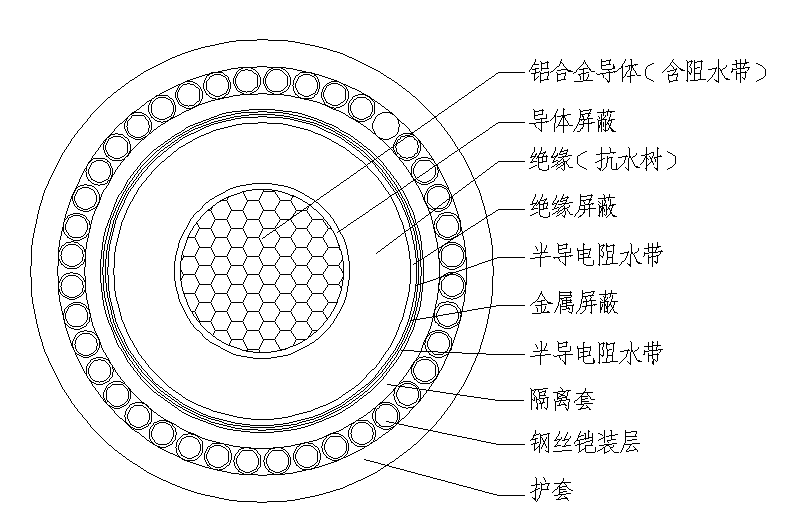 铝合金芯交联聚乙烯绝缘钢丝铠装聚乙烯护套海洋电缆 |